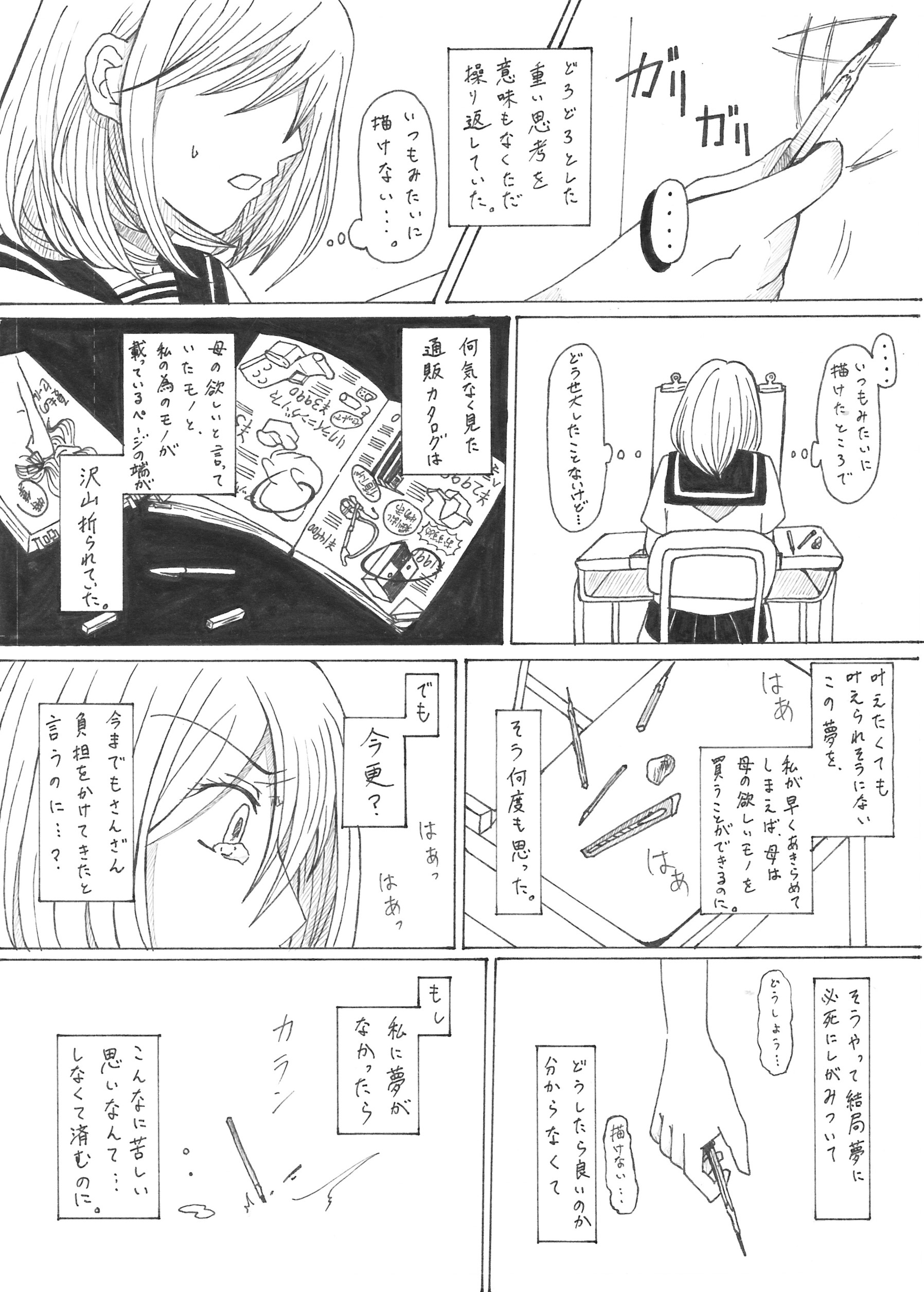 本当はもっとネーム段階ではボリュームがあったんだけれども、作業が間に合わず急遽ページ数を減らした。